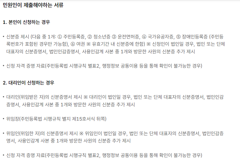 직접 방문시에는 본인의 신분증만 있어도 되지만, 대리인 발급시에는 위임장이 필요합니다.