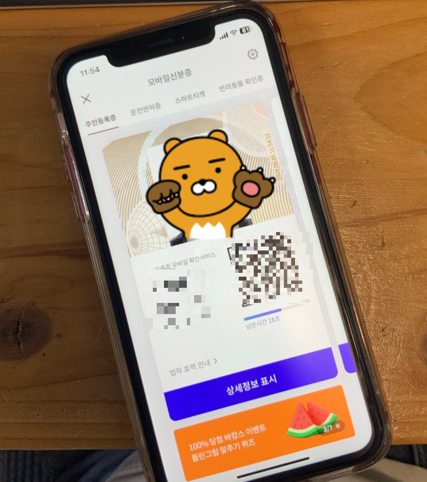 이 신분증은 휴대폰 화면에 나타나는 특별한 그림, 즉 'QR 코드'를 사용해요.